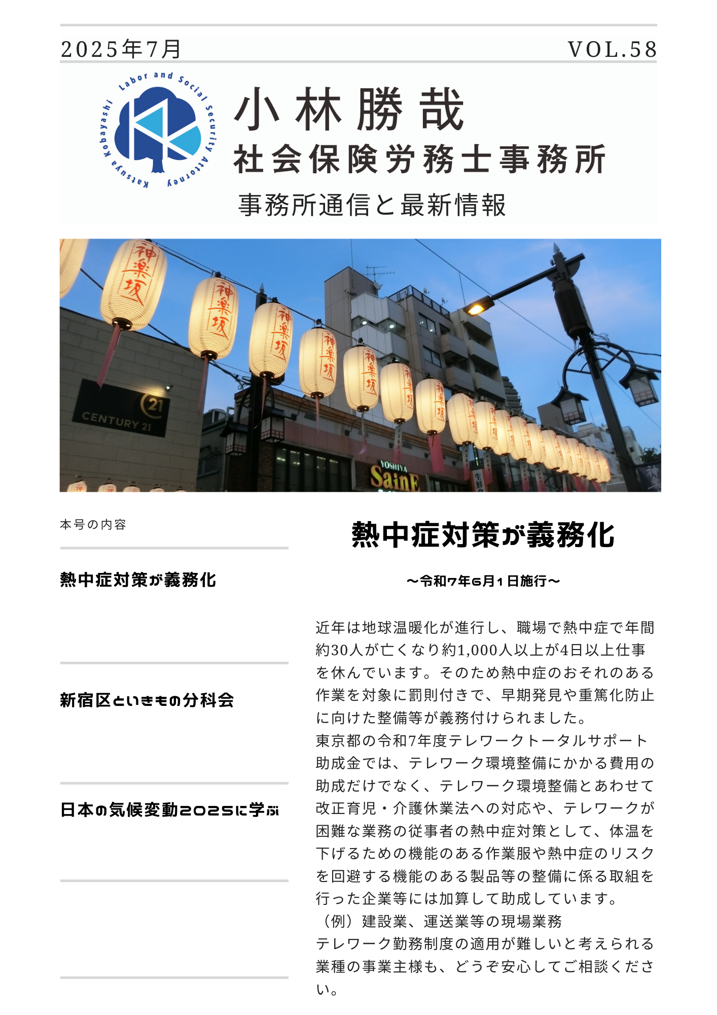 事務所通信と最新情報 VOL.58を、お届けします。